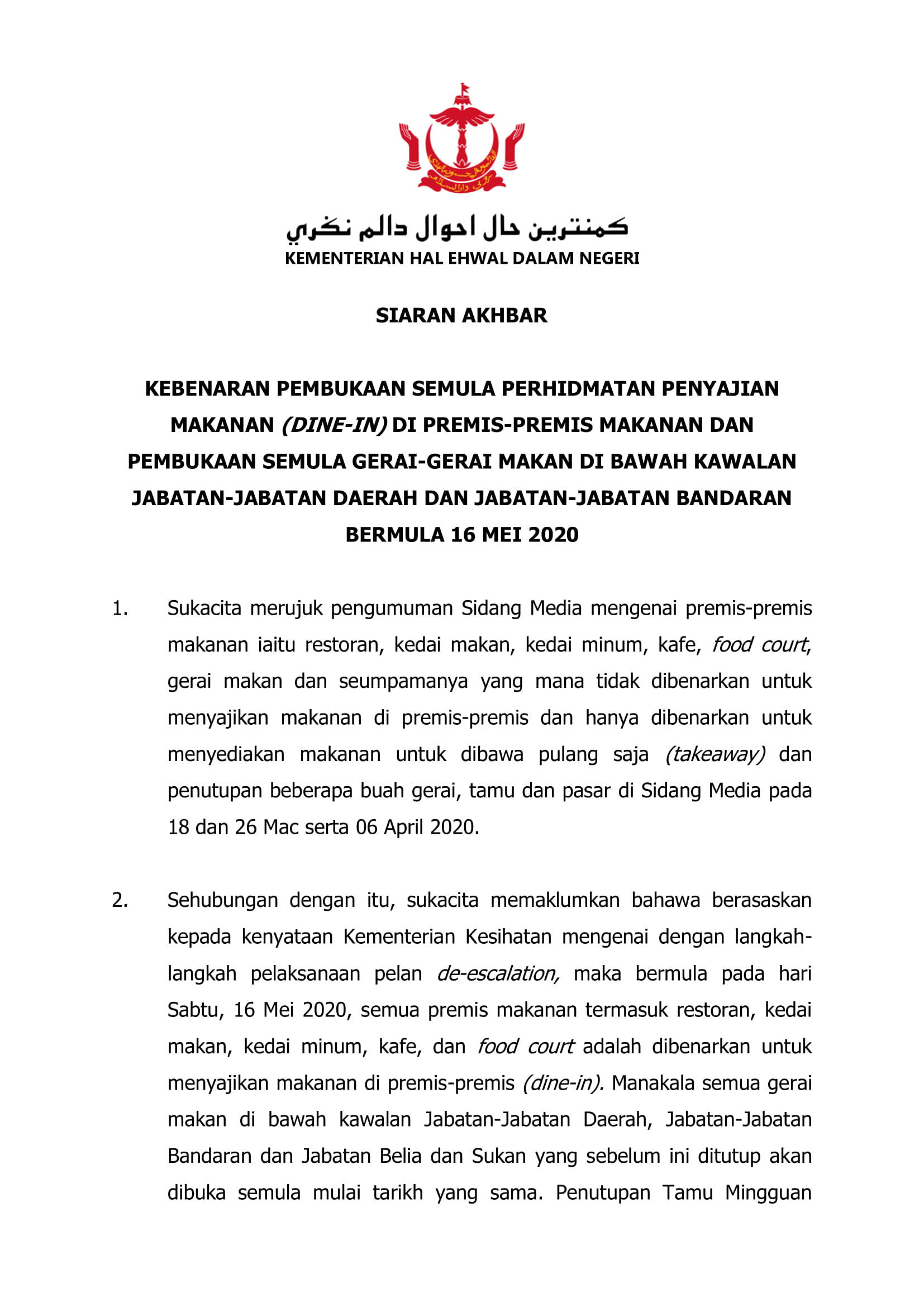 Berita Terkini - KEBENARAN PEMBUKAAN SEMULA PERHIDMATAN PENYAJIAN