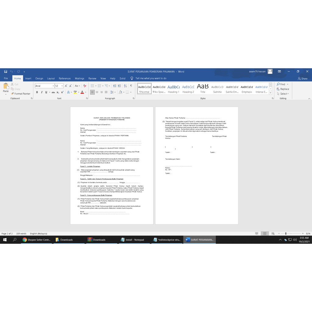 Buy Contoh surat perjanjian pinjaman wang (word editable